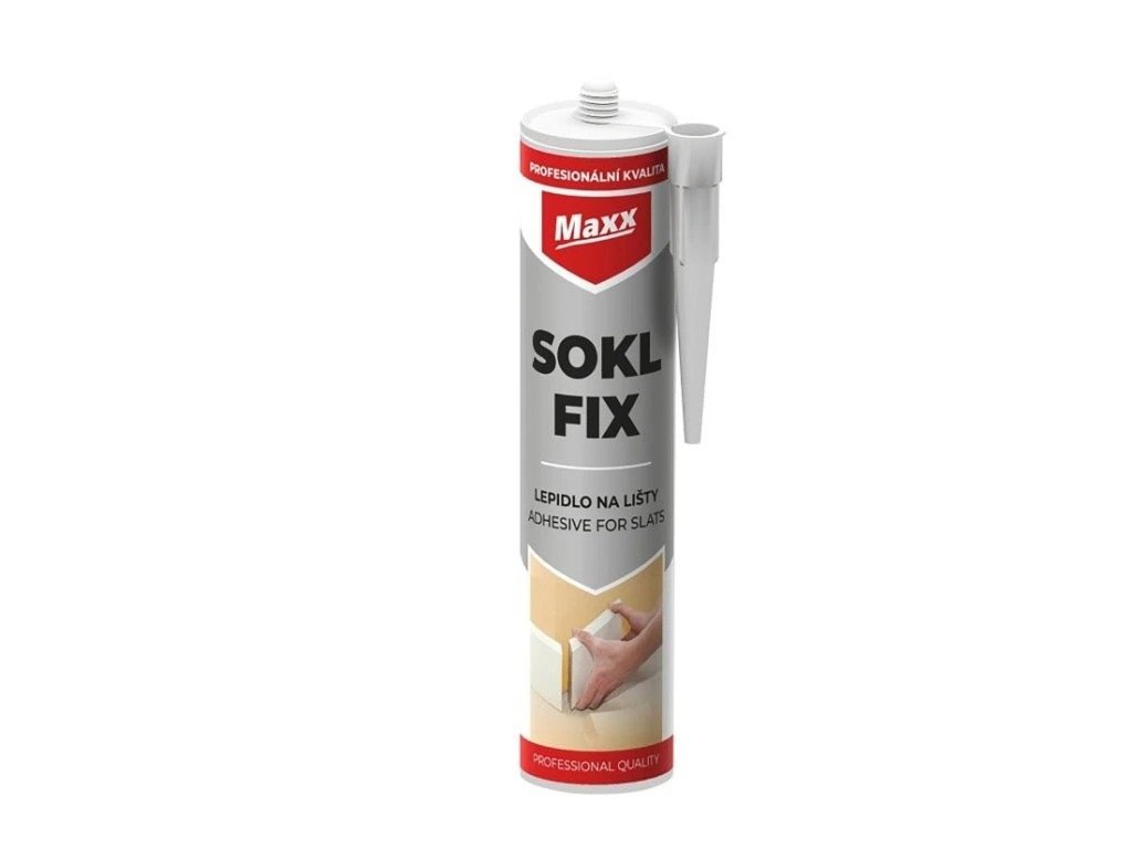 SOKLFIX je vysoce kvalitní produkt na konstrukční spojování desek, lišt, stěnových obkladů, podlah, stropů atd. V mnoha případech není nutné lisování nebo lepení. Lepení téměř všech běžných materiálů a (i mokrých) ploch. Založený na MSP bázi. Vnitřní a vnější použití bez barvení. Může být přetřen většinou typů akrylových, latexových a alkydových barev. Nejvhodnější k přilepení soklových lišt a různých jiných typů profilů. Lepení: omítky, skla, zrcadel, mnoha plastů (akrylových), přírodních kamenů, betonu, dřeva a mnoha kovů na různých podkladech a navzájem. Příklady: obklady stěn, stropní krytiny, izolační desky (minerální vlna, pěna, polyuretan, PS atd.), stavební konstrukce, ozdoby, rámy, prahy, okenní parapety, soklové lišty, střešní a fasádní prvky. Tmel má bílou barvu. Balení 290 ml.
