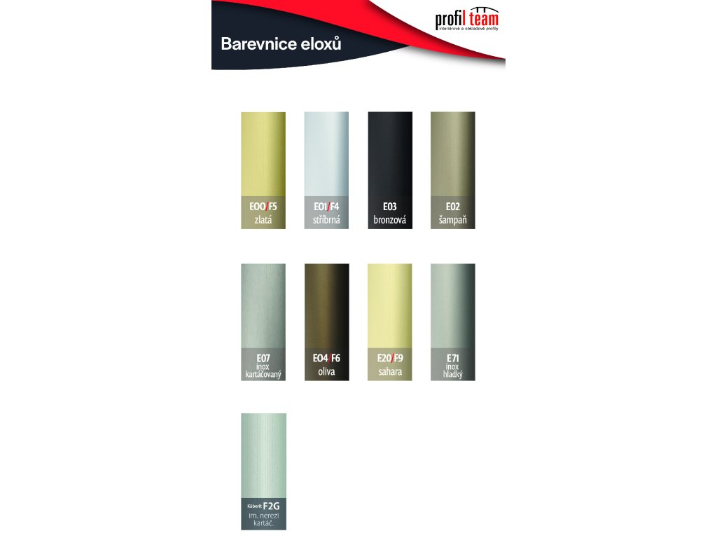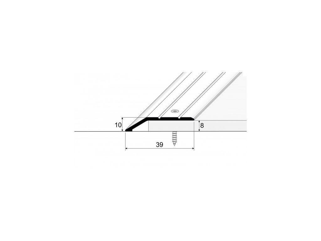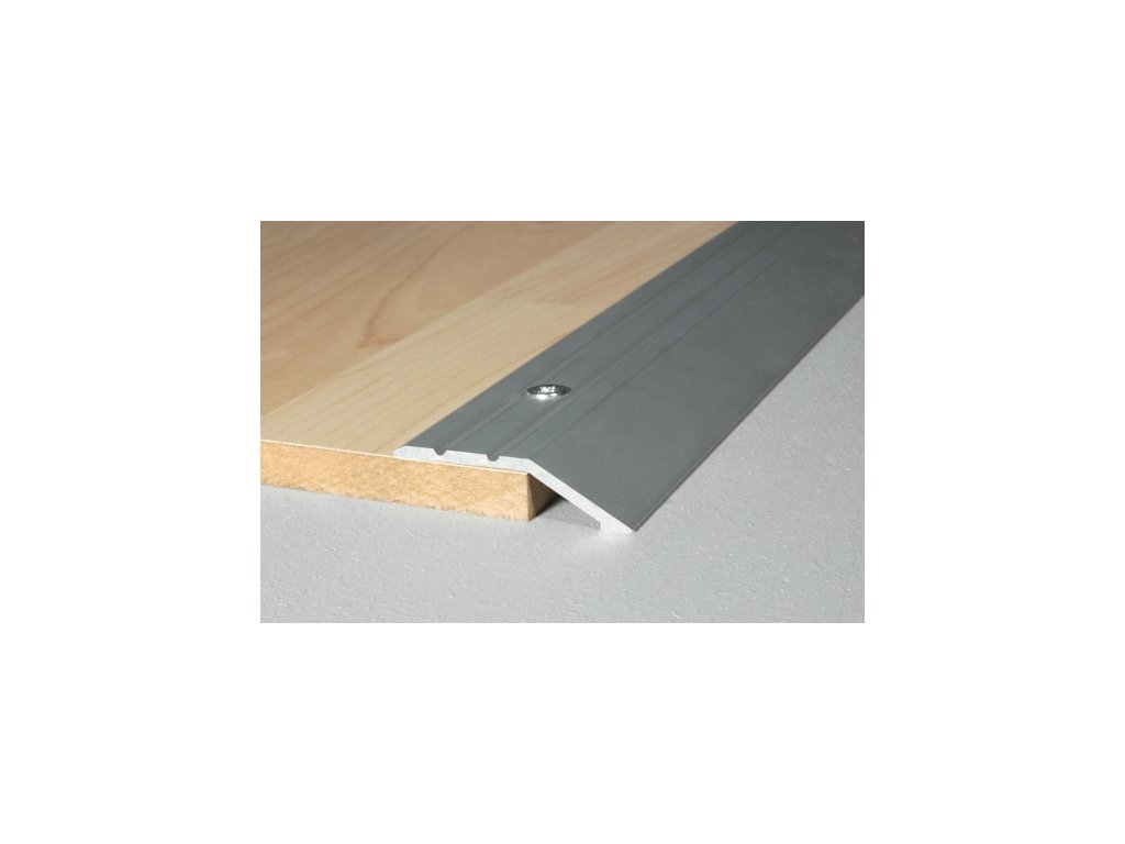Tento profil nám umožňuje ukončení či nájezd mezi dvěma různými typy podlah ve výškové úrovni max do 8 mm. Profil je dostupný v eloxovaném provedení nebo v široké nabídce fólií.