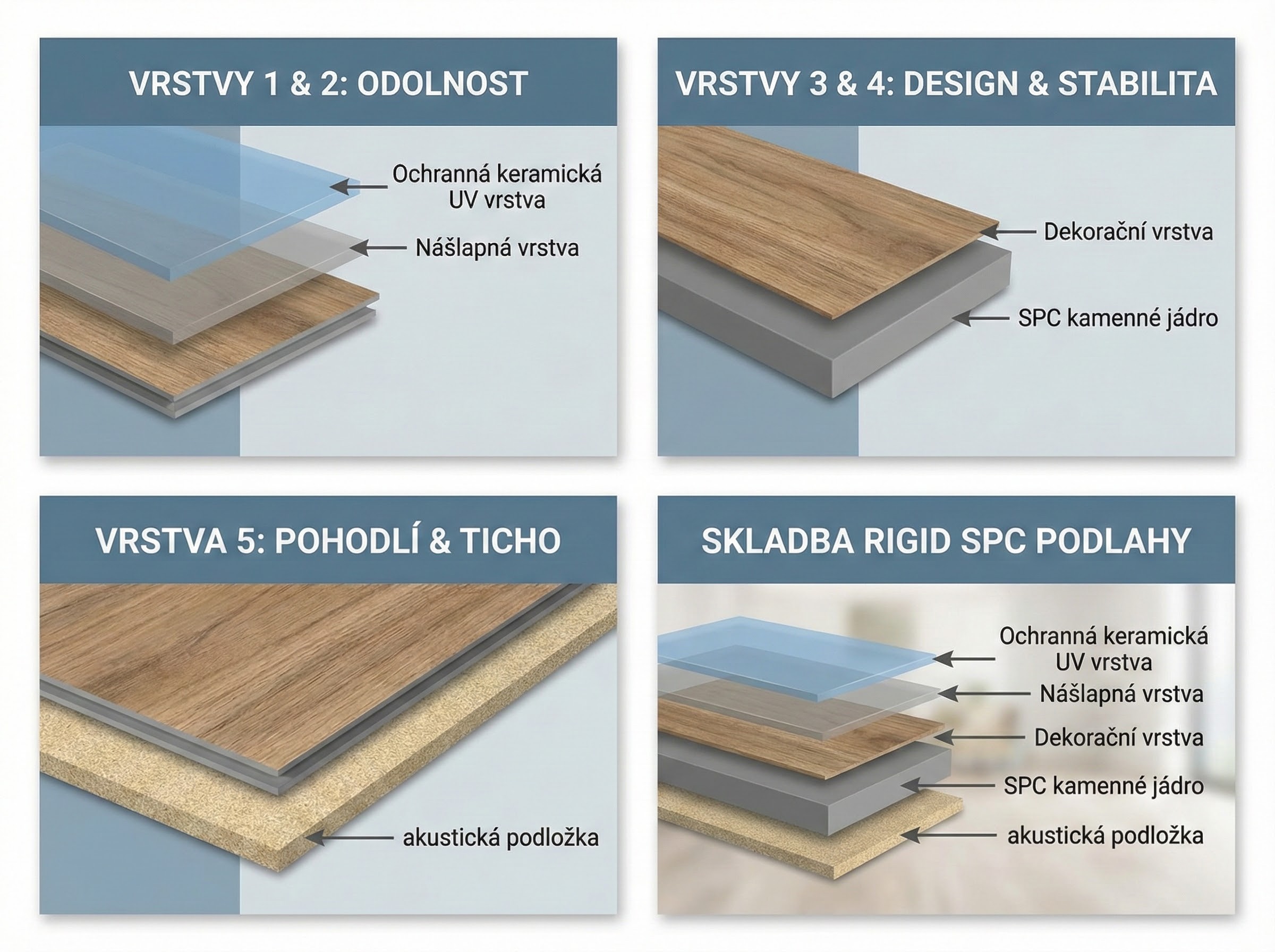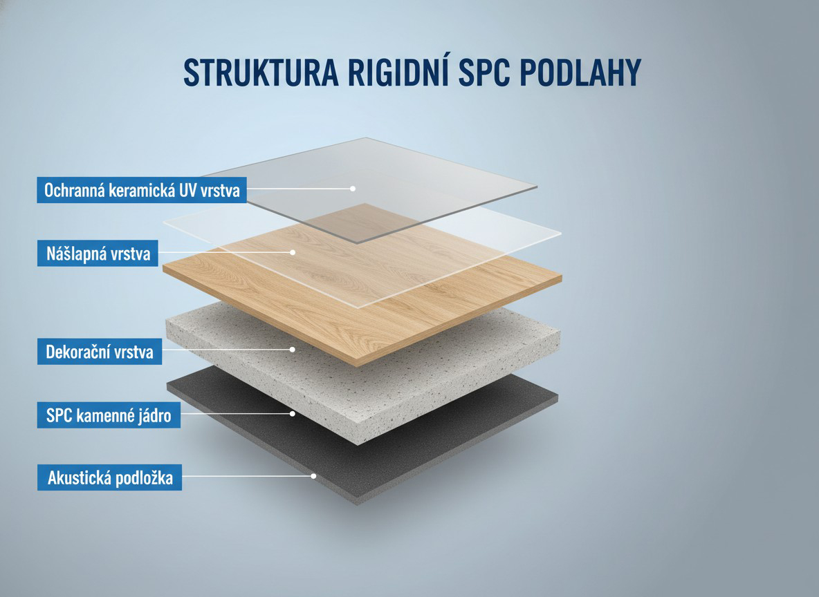 Rigidní SPC odlehčené jádro – rozměrová stálost, odolnost vůči teplu a vlhkosti