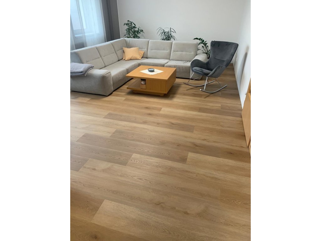 Hlavní předností je také tloušťka 8 mm, která dává podlaze extra pevnost a extrémní stabilitu. Podlaha se příjemně chová při chůzi, je odolnější vůči běžnému namáhání a díky robustnější konstrukci lépe drží tvar i v delších plochách.